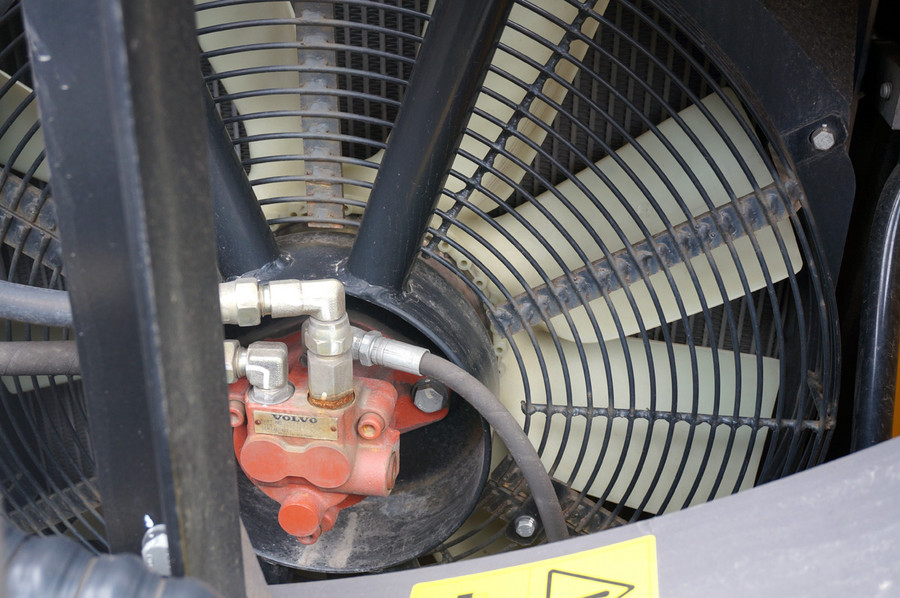 5、液压油散热器堵塞,液压油散热器若发生渗油很容易就会吸附灰尘,造成散热器堵塞,导致高温。
