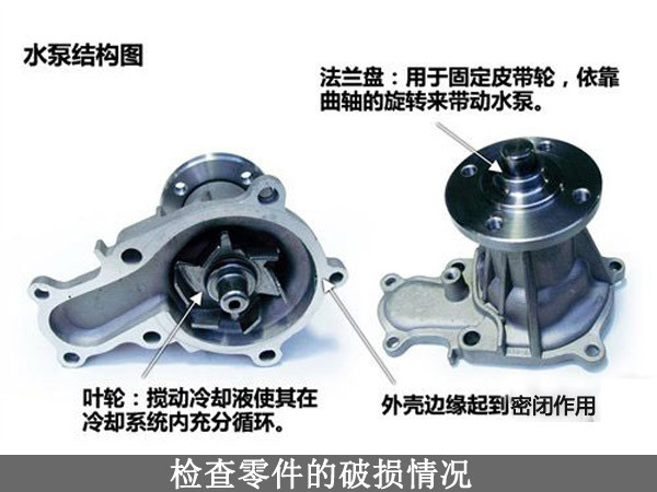 4、检查水泵是否正常工作,发动机工作时可通过观察水箱口出是否有水流来判断,发动机刚启动时节温器关闭状态,这个时候水箱内应该是没有水流,节温器打开后可以观察到水流,由此可判断发动机水泵和节温器是否工作正常。